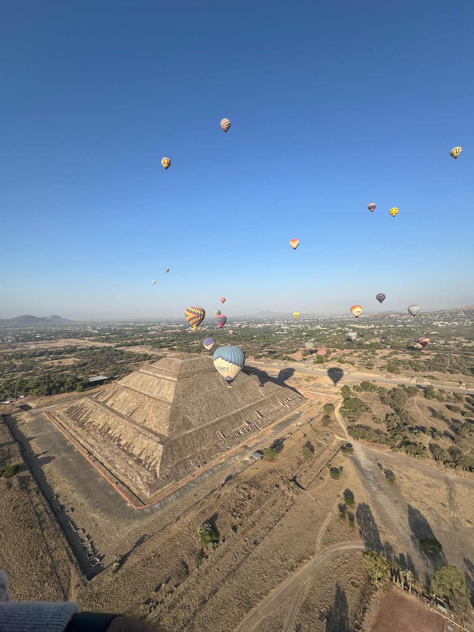 Speaking of unforgettable experiences, day three involved a hot air balloon ride over the Teotihuacan pyramids at sunrise. Let me tell you, it was breathtaking. Gliding silently over those ancient ruins as the sun cast its golden light over the landscape was an experience I’ll never forget. Afterwards, we explored the pyramids themselves, feeling dwarfed by their sheer size and majesty.